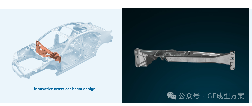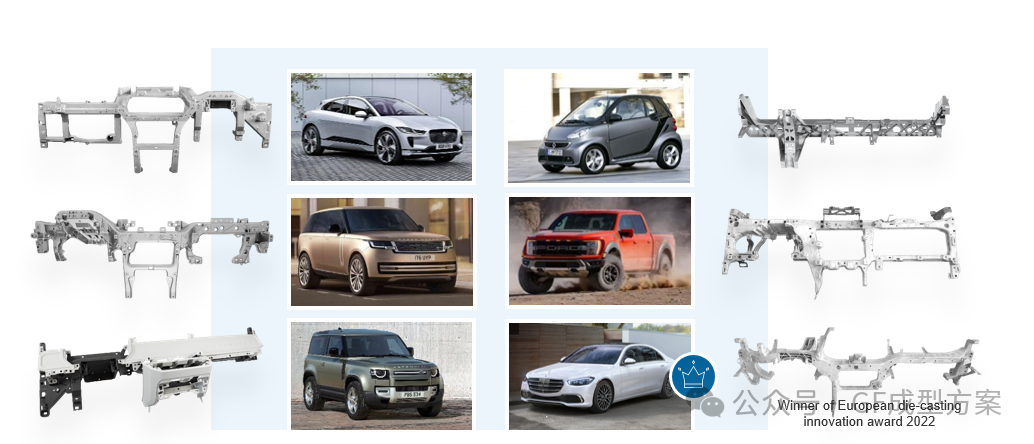 上图中仪表台横梁支架是我们为宝马汽车提供的解决方案,总长度1.5米,后期总共需要装配三十多个零件,大大提升了压铸和切边的难度。提供了最大的功能集成和显著的重量减轻。