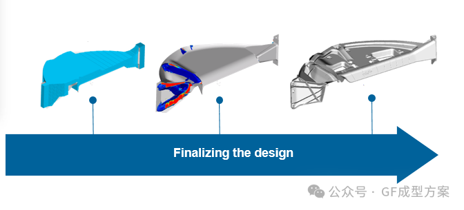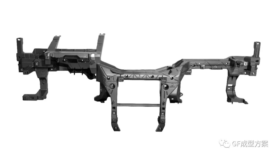 GF成型方案非常愿意早期介入产品的研发,或者与客户共同开发这样类型的零部件,将更多功能进行的组合。该零件通过有限元分析,在正面碰撞和侧面碰撞模拟中,获得良好的碰撞模拟成绩。