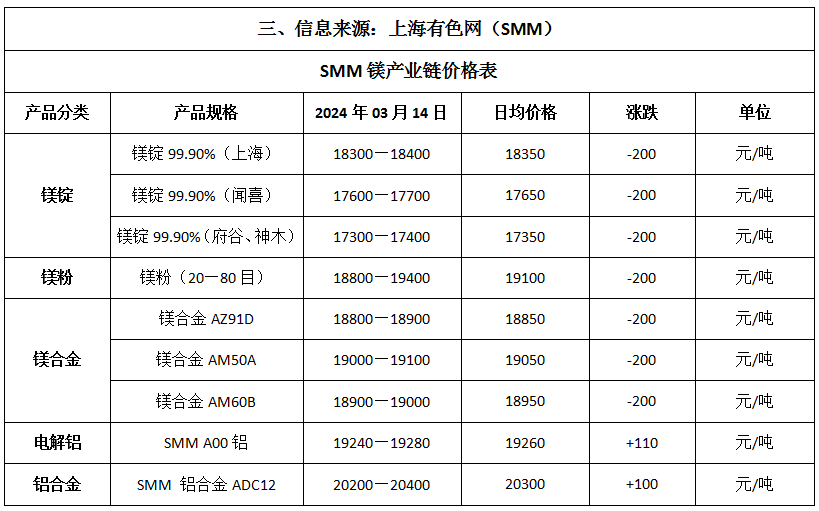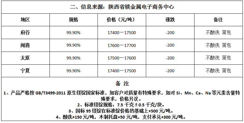 3月14日(周四),榆镁观察从上游镁厂了解到,府谷地区99.9%镁锭出厂含税现金成交价格为17400~17500元/吨