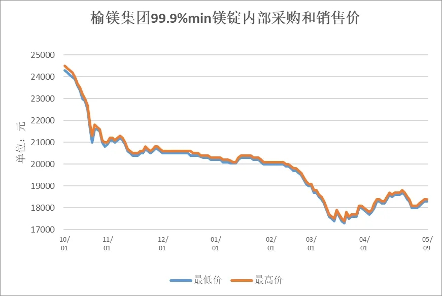5月9日(周四),榆镁观察从上游镁厂了解到,府谷地区99.9%镁锭出厂含税现金成交价格为18300~18400元/吨