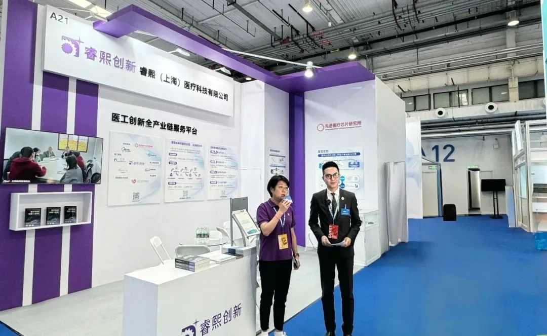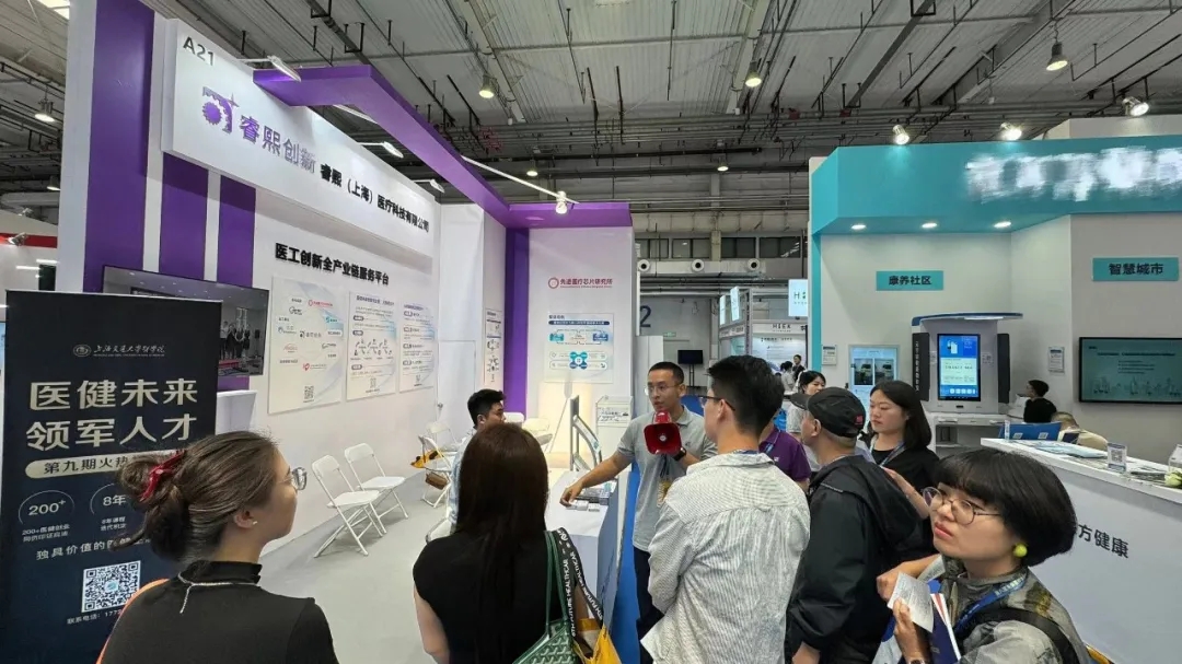 展会期间,睿熙创新携平台产品及服务内容包亮相展台,吸引了众多嘉宾驻足咨询,现场工作人员为每位嘉宾提供了全方位的解说,从医工创新平台内容到培训课程及孵化产品,全方位展示了平台的创新性与完整性。