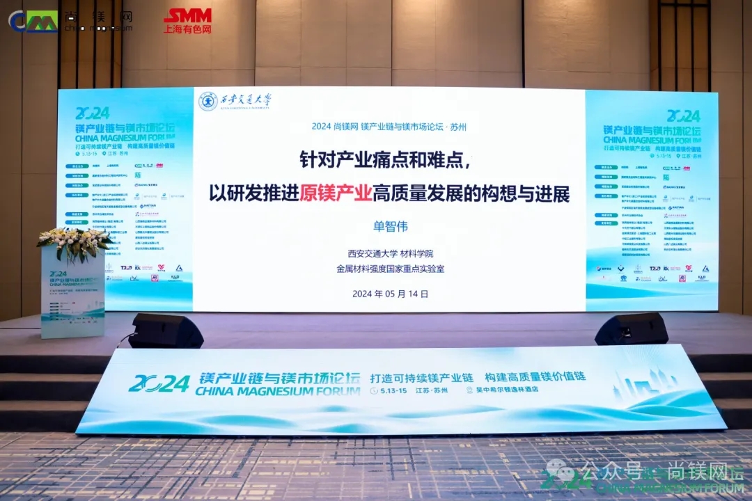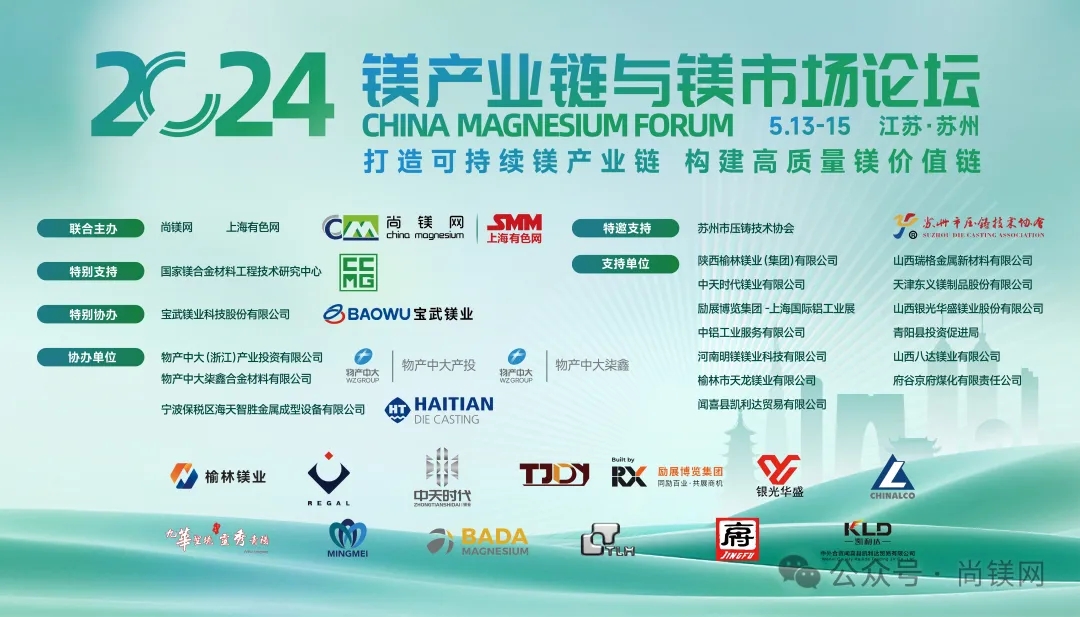 5月13-15日,“2024镁产业链与镁市场论坛”在苏州成功举办。本次论坛由尚镁网、上海有色网联合主办,国家镁合金材料工程技术研究中心特别支持,由宝武镁业科技股份有限公司特别协办,物产中大(浙江)产业投资有限公司、物产中大柒鑫合金材料有限公司、宁波保税区海天智胜金属成型设备有限公司协办,苏州市压铸技术协会特邀支持,并得到13家镁产业链骨干企业的大力支持,鼎力共同搭建镁产业链交流平台。本次论坛的主题是:打造可持续镁产业链,构建高质量镁价值链。