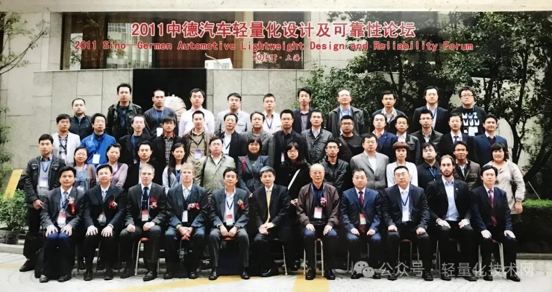 2011年首届中德轻量化技术年会由中气培训中心、轻量化技术网与弗劳恩霍夫协会可靠性研究所在上海共同举办。一排左起第四人为时任弗劳恩霍夫系统可靠性所长、达姆斯塔特工业大学副校长的Hanselka教授。