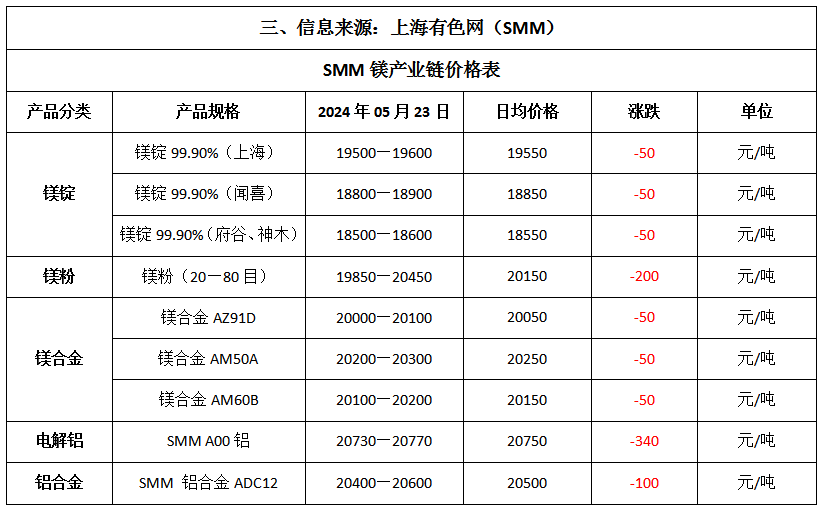 5月23日(周四),榆镁观察从上游镁厂了解到,府谷地区99.9%镁锭出厂含税现金成交价格为18500~18600元/吨