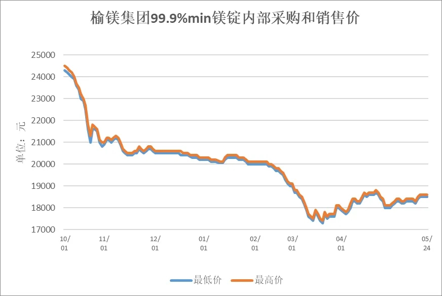 5月24日(周五),榆镁观察从上游镁厂了解到,府谷地区99.9%镁锭出厂含税现金成交价格为18500~18600元/吨