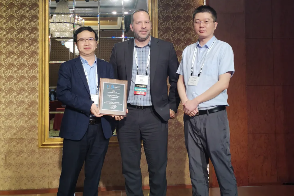 重庆大学蒋斌和黎田代表获奖单位领奖