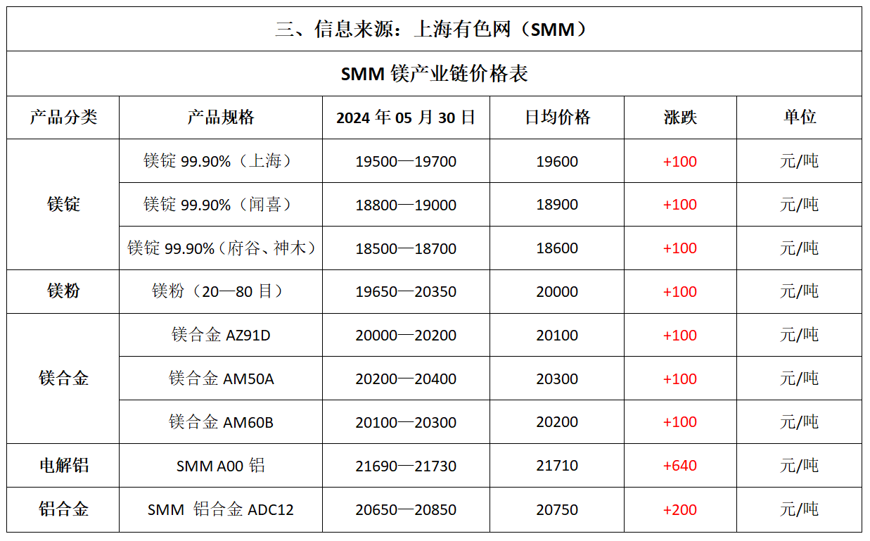5月30日(周四),榆镁观察从上游镁厂了解到,府谷地区99.9%镁锭出厂含税现金成交价格为18600~18700元/吨