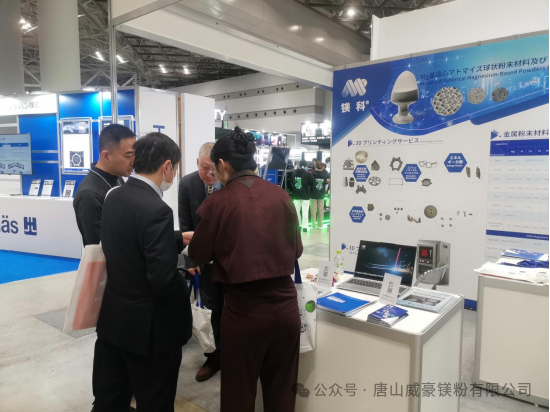 本次展会中,唐山威豪重点介绍了镁合金在 3D 打印中的轻量化潜力、结构设计自由度以及材料性能优势,引起了日本当地市场及科研机构的广泛关注。 不少观众表示,这是他们首次系统了解镁合金 3D 打印材料的工业化解决方案,对镁基粉末在未来高端制造中的应用前景表现出浓厚兴趣。