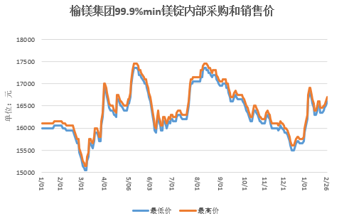 2月26日(周四),节后第三个工作日,镁市坚挺向上运行,99.9%镁锭府谷地区工厂报主流出厂含税现金价格16600——16700元/吨,较昨日上涨100元/吨,个别工厂暂不报价,市场低价货源难寻。