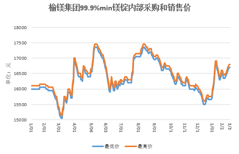 3月3日(周二),镁市维持稳健运行,价格平稳,99.9%镁锭府谷地区工厂报主流出厂含税现金价格16700——16800元/吨,与昨日持平。据了解,近日市场询盘采购平缓,成交氛围清淡。工厂以稳价为主,报价坚挺,市场低价货源不多;下游客户及中间商进行刚需补货,对于高价接受不良。综合分析,预计短期内镁锭市场将维持稳定运行,价格在当前价位区间小幅波动。
