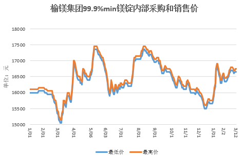 3月12日(周四),99.9%镁锭府谷地区工厂报主流出厂含税现金价格维持16650——16750元/吨