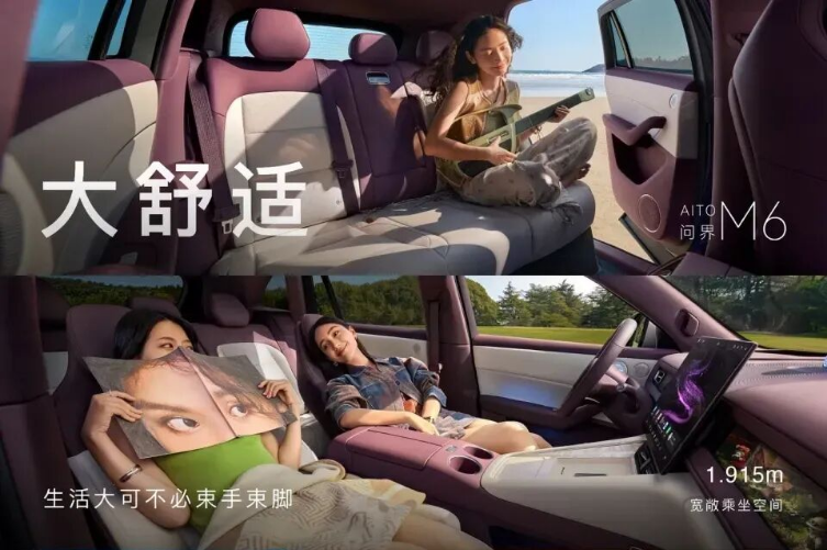 舒适与拓展配置方面,问界M6全车设21处拓展点(含10处磁吸点),支持磁吸旋钮自定义控制空调、音量等功能;二排座椅支持29°–42°电动调节,并具备通风加热功能;车内配备车载220V电源、10个车内外麦克风、7.3L压缩机冰箱(温控范围-6℃至50℃),以及副驾“灵感橱窗”(支持更换手办、电子墨水屏或香氛模块)。