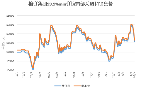 4月24日(周五),镁市继续弱势下行,99.9%镁锭府谷地区工厂报主流出厂含税现金价格16550——16650元/吨,主流工厂报价含税现汇16600元/吨。