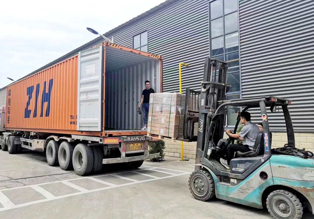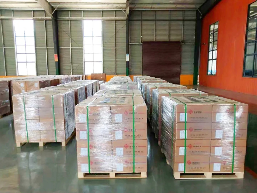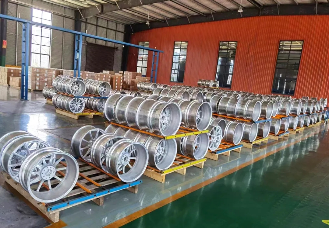 德威科技仓库里,打包装箱的镁合金汽车轮毂,正在等待发货