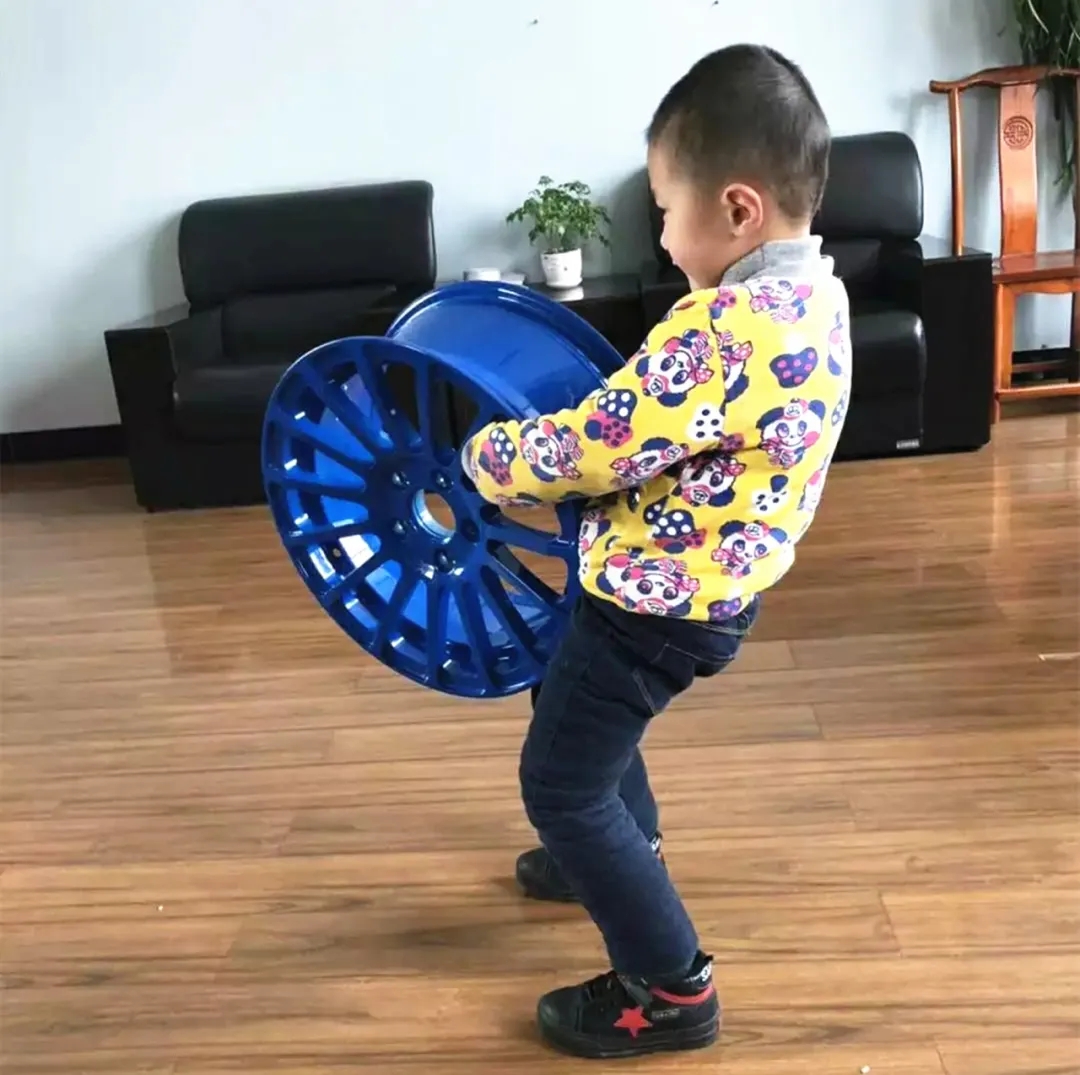 德威科技生产的镁合金汽车轮毂重量轻,儿童也可以轻松拎起
