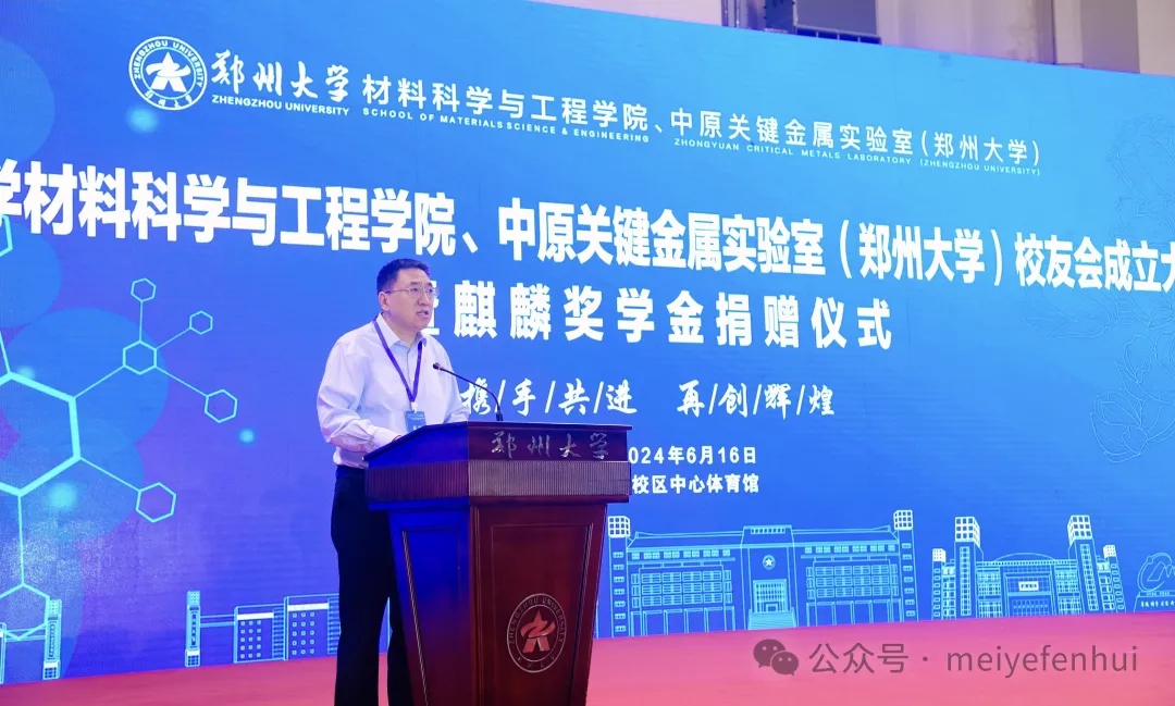 6月16日,郑州大学材料科学与工程学院、中原关键金属实验室(郑州大学)校友会成立大会暨麒麟奖学金捐赠仪式举行,在召开校友会成立大会之际,中国工程院院士、中原关键金属实验室主任、原郑州大学材料科学与工程学院院长何季麟向郑州大学捐款300万元,设立“麒麟奖学金”。
