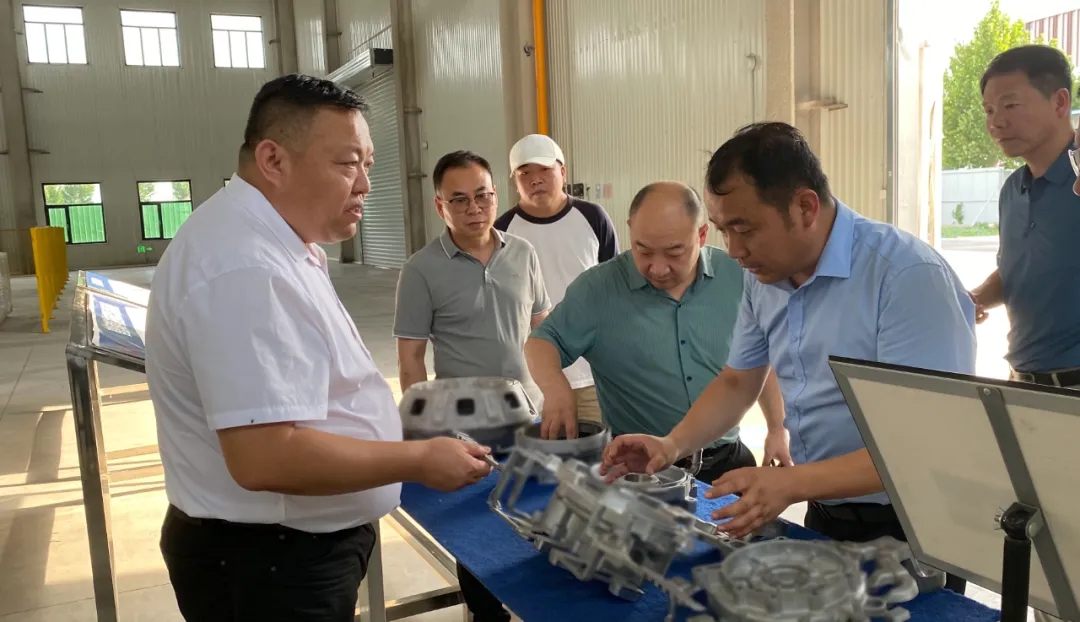 包延君一行先后参观了压铸车间和机加工车间,深入了解了产业园项目布局与规划、设备投入、材料开发、技术创新、生产供应与质量管控等方面的情况。