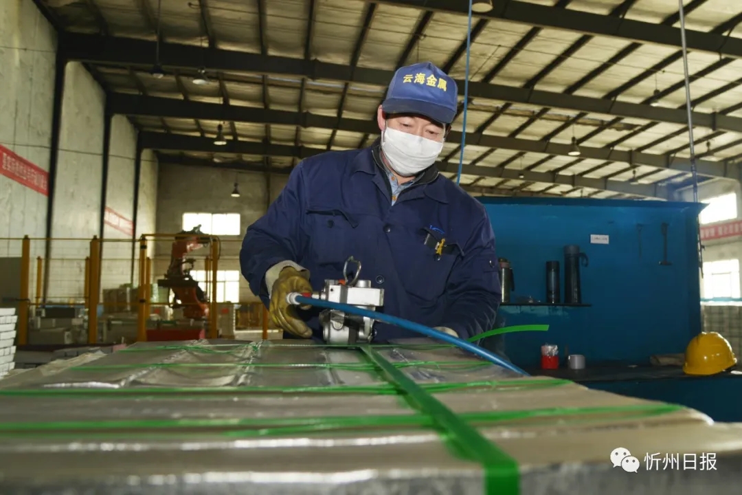 五台云海镁业工人正在打包产品。张存良 摄