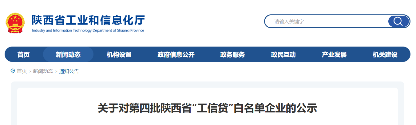 根据《陕西省“工信贷”企业白名单制度》(陕工信发〔2022〕339号)要求,陕西省工业和信息化厅联合人民银行陕西省分行已按程序完成了第四批“工信贷”白名单企业的审核工作,现对审核后的893户企业名单予以网上公示。