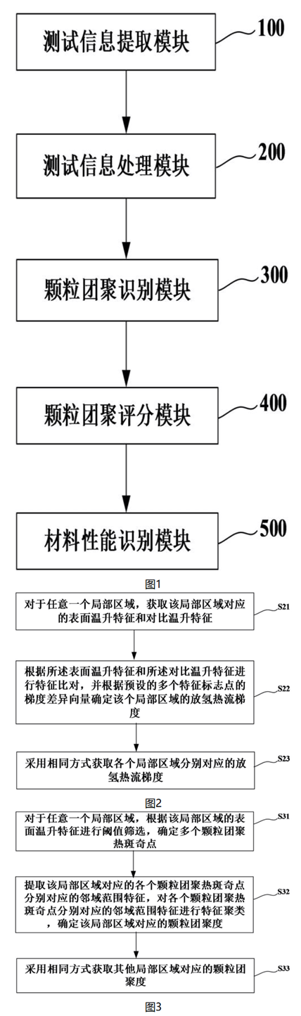 本申请提供了一种镁基固态储氢材料性能测试系统,其核心是通过测试信息提取模块获取所述镁基固态储氢材料不同局部区域对应的表面温升特征;通过测试信息处理模块进行热流梯度提取,根据各个放氢热流梯度进行自相关学习,确定放氢均一性参数;通过颗粒团聚识别模块对各个局部区域的表面温升特征分别进行颗粒团聚度识别;颗粒团聚评分模块根据各个局部区域分别对应的可信权重对颗粒团聚度进行加权融合,得到颗粒团聚测试评分;材料性能识别模块根据所述颗粒团聚测试评分进行所述镁基固态储氢材料的颗粒分割性能测试,能够通过提取放氢均一性参数及颗粒团聚测试评分,实现对镁基固态储氢材料的颗粒分割性能测试。