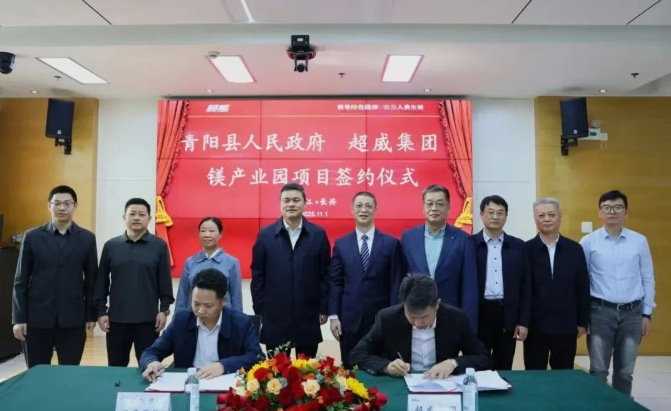 11月1日,超威集团与青阳县人民政府举行镁产业园项目签约仪式。青阳县委书记、县长方操胜,超威集团董事长周明明等双方领导出席,共同见证项目签约。