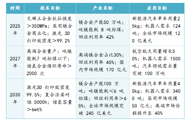 3.标准建设:在2026 年底前发布《人形机器人用镁合金技术要求》《可降解镁合金医疗器械规范》,建立回收利用标准,到 2030 年使再生镁品质达到原生镁水平。