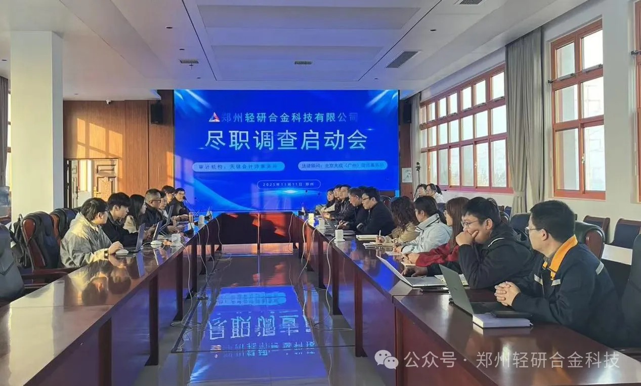 11月11日,郑州轻研合金科技有限公司首次公开发行股票(IPO)尽职调查启动会成功举行,标志着公司上市筹备工作迈入实质性推进阶段。本项目启动会由郑州轻研合金科技有限公司上市委员会相关成员、天健会计师事务所(特殊普通合伙)项目团队成员、北京大成(广州)律师事务所项目团队成员参加。各方代表齐聚一堂,共同拉开上市征程的重要序幕。