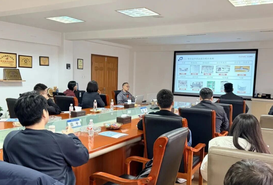参观结束后,双方在天正模具大会议室举行专题技术交流会。天正模具技术总监何炳涛系统介绍了从模具设计理念、结构仿真分析,到制造工艺规划、精密加工实现,再到试模调试、持续优化的全流程技术体系,以及半固态成型工艺的关键技术难点与模具解决方案,展示了针对该工艺专门设计的流道系统、温度控制模块及高寿命耐磨部件。