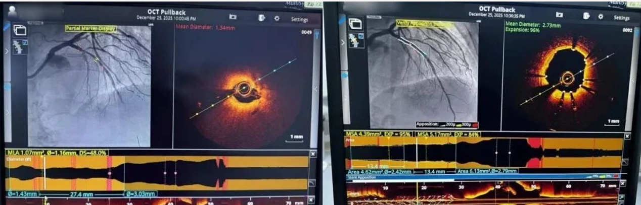 12月25日,中山五院心血管内科团队成功开展新一代镁合金可吸收冠状动脉支架(Freesolve™)植入术。该手术依托“港澳药械通”政策,在光学相干断层成像(OCT)全程腔内影像的精准引导下完成,实现了“介入无植入”的先进治疗理念,为冠心病患者提供了更安全、更符合生理需求的新选择。
