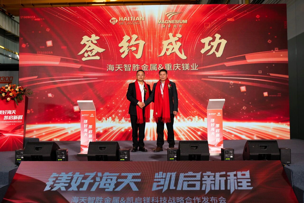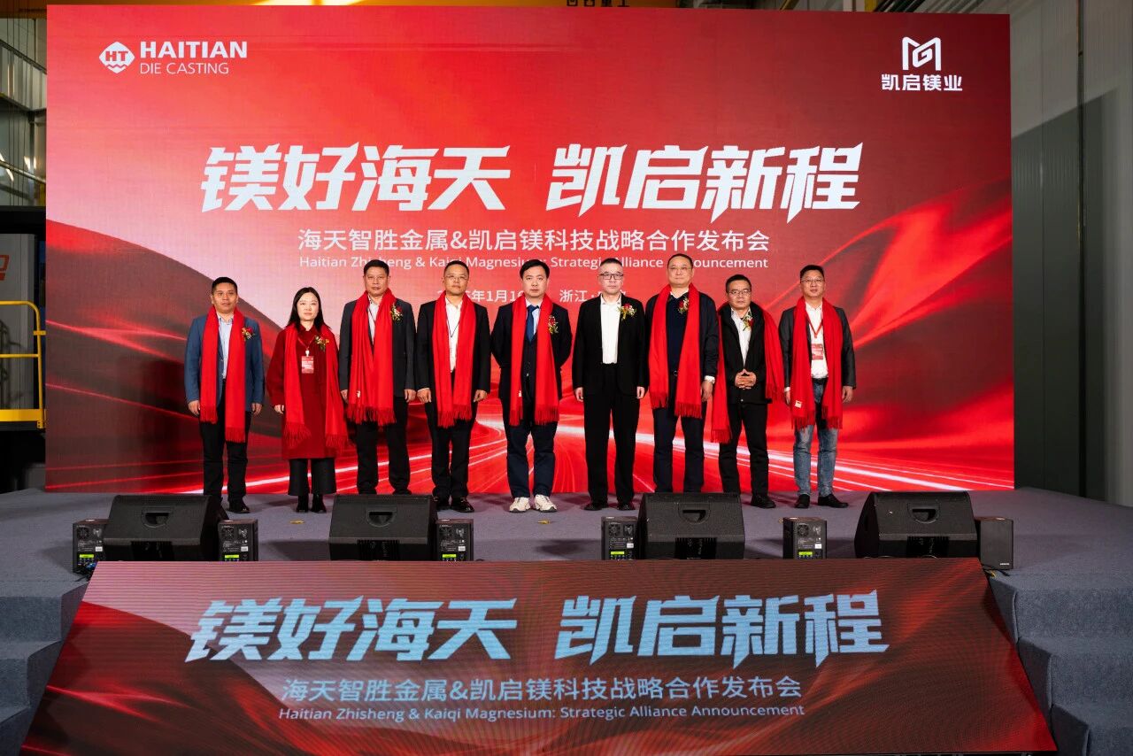 1月16日,海天智胜金属与宁波凯启镁科技有限公司(下称“凯启镁科技”)签署战略合作协议,双方将在产能、技术、产业三大维度深化协同。同期,海天智胜金属还与重庆镁业、湖北镁器时代等企业达成多项合作,覆盖产业链关键环节,为镁合金产业高质量发展注入强劲动能。