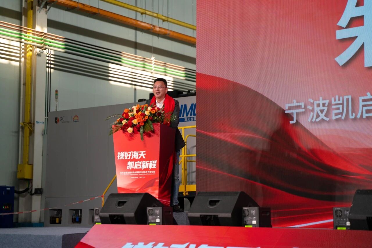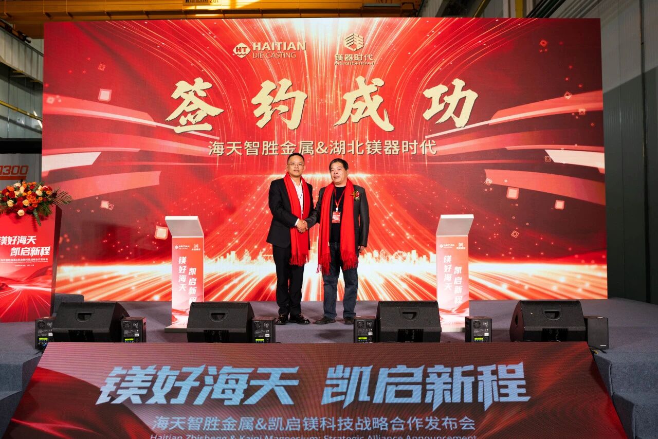 鄞州经济开发区管委会副主任励勇,海天集团总裁张斌,凯启镁科技总经理朱国栋,重庆镁业科技总经理黄胜宇,湖北镁器时代副总经理杨姣,海天智胜金属副总经理洪剑文等多方企业高层,以及合作代表、媒体嘉宾等共同见证了这一重要时刻。