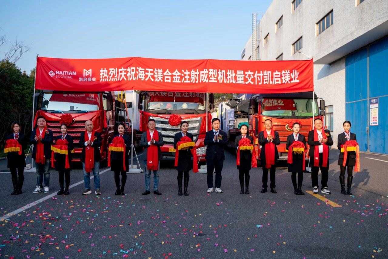 签约仪式结束后,现场举行了隆重的发机仪式。6台高性能镁合金注射成型机正式启程,发往凯启镁科技生产基地,成为双方合作及产业协同成果的直接见证。