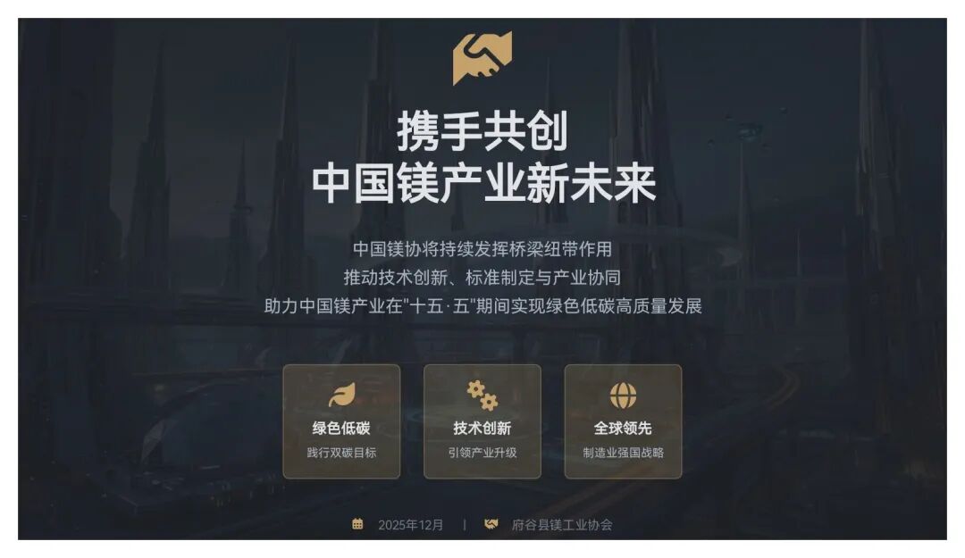 形成国内上下游协同、产业内互补、各区域联动的产业生态,“政产学研用”深度融合,企业、高校、科研院所联合组建创新平台,攻克关键核心技术。上下游企业建立长期稳定合作关系,实现资源共享、风险共担,推动镁产业与新能源汽车、航空航天、电子信息等下游产业深度绑定,形成协同发展的产业集群,为我国高端装备制造业自主化、绿色化发展提供坚实支撑。中国镁协仍将持续发挥桥梁纽带作用,推动技术创新、标准制定与产业协同,助力中国镁产业在“十五·五”期间实现绿色低碳高质量发展,为国家“双碳”目标与制造业强国战略贡献镁产业力量。