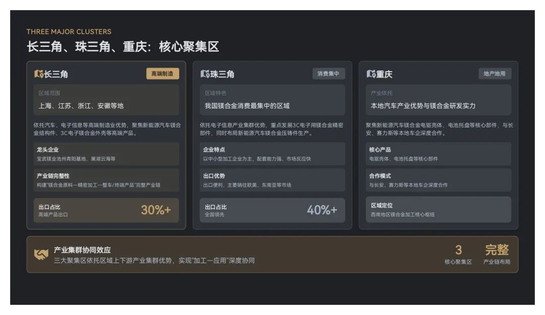 2025年,我国镁合金加工产业已形成长三角、珠三角、重庆三大核心聚集区,