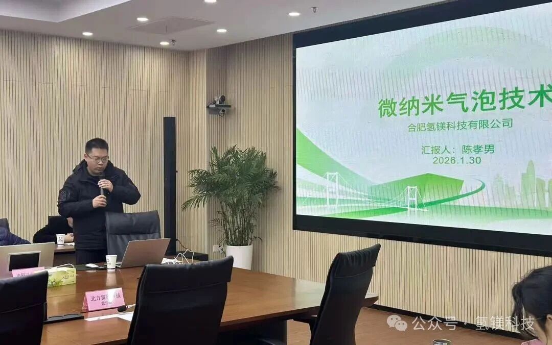 合肥镁氢材料创制中心镁材料上下游应用中心副主任陈孝男汇报中表示,纳米气泡技术凭借微米及纳米级别的微小尺寸实现高稳定性、强氧化性与环境友好的特点,可高效降解农药、抗生素、持久性有机污染物等水体有害物质,同时能穿透底泥微孔抑制磷释放、降解有机质、固定重金属,还可破坏蓝藻细胞壁与光合系统实现长效防控,已在苏州河道、滇池底泥及韩国汉江、日本琵琶湖等国内外水体治理项目中验证成效,目前在合肥有订单需求;另一方面上海净画缘的蓝氧技术成果,将微纳米气泡与臭氧深度融合,打造出蓝氧水系列产品,经中国科学院武汉病毒研究所等权威机构认证,对新冠病毒、大肠杆菌、金黄色葡萄球菌等各类病毒病菌杀灭率超99%,具备无化学残留、杀菌速度快、自来水直接制备等优势,可广泛应用于食材处理、工业清洗、畜牧养殖、市政工程等场景。