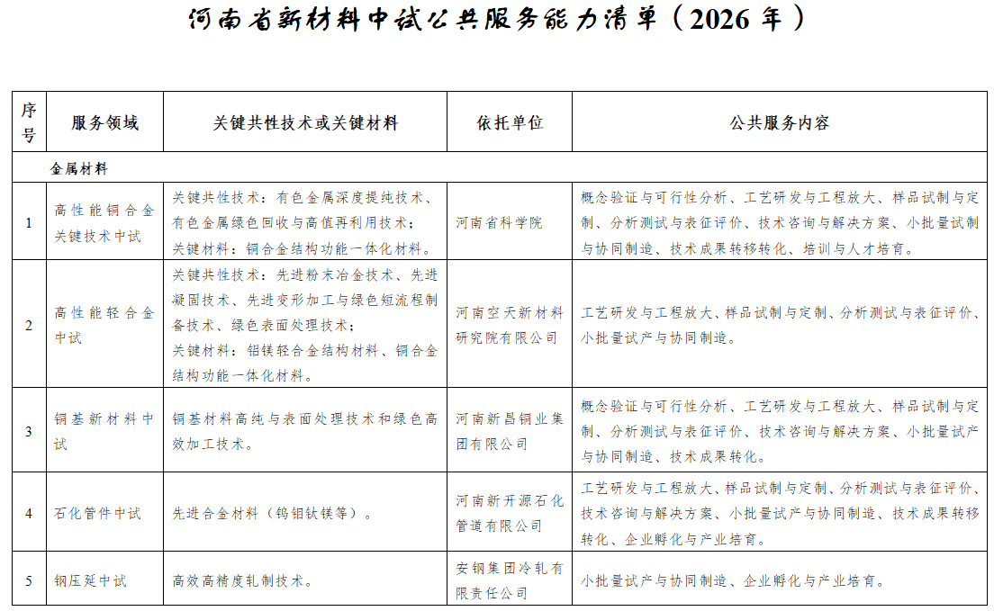 河南省积极响应国家部署,率先梳理并发布中试能力清单,正是要将政策红利转化为区域产业竞争力,推动新材料产业成为经济新增长极。该清单是省工信厅系统梳理全省范围内可对外开放服务的新材料领域中间试验、工艺验证、样品试制、检测分析等公共服务能力的汇总与发布。
