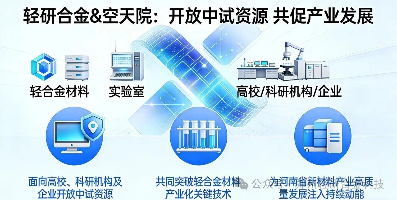 作为河南省轻合金材料领域的重要创新载体,轻研合金&空天院构建覆盖“基础研究—小试平台—中式开发”的全链条创新体系。公司不仅拥有河南省先进轻合金重点实验室和郑州市高性能轻合金制造业中试平台,更是河南省高性能轻合金创新中心、河南省企业技术中心、河南省博士后创新实验基地、河南省高性能轻合金工程研究中心、河南省航空航天轻合金工程技术研究中心和河南省院士工作站的中试场地,将向社会提供从概念验证、工艺放大到小批量试制、中试服务的一站式综合服务。