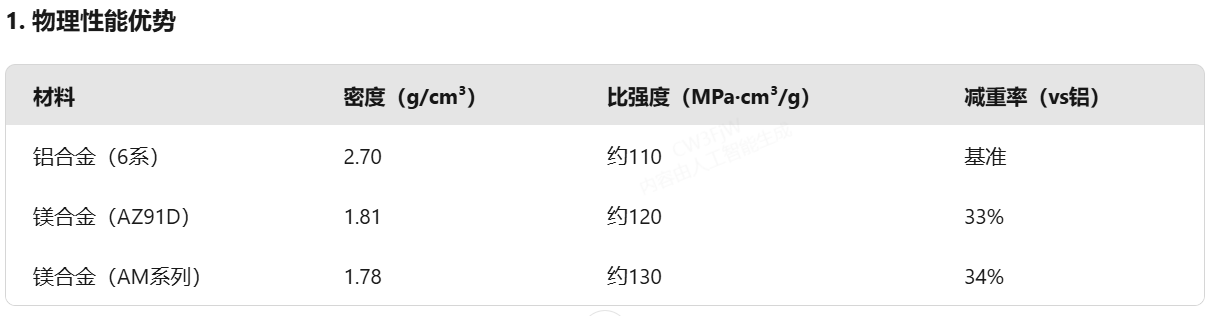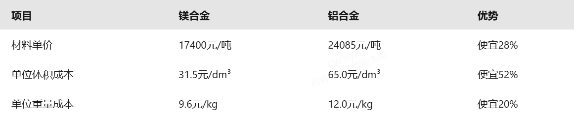 (二)镁合金相对铝合金的核心优势