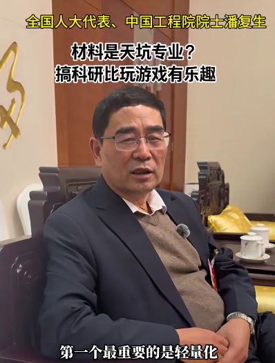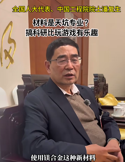 “航空航天领域每减重一公斤,镁合金就能带来10万美元的效益。”中国工程院院士潘复生代表在采访时表示,中国在镁合金研究多个方向已处于世界领先水平。针对网上“材料专业是天坑专业”的说法,潘院士现场“辟谣”,并分享了科研的乐趣。他呼吁更多年轻人、更多企业关注和参与这一领域。