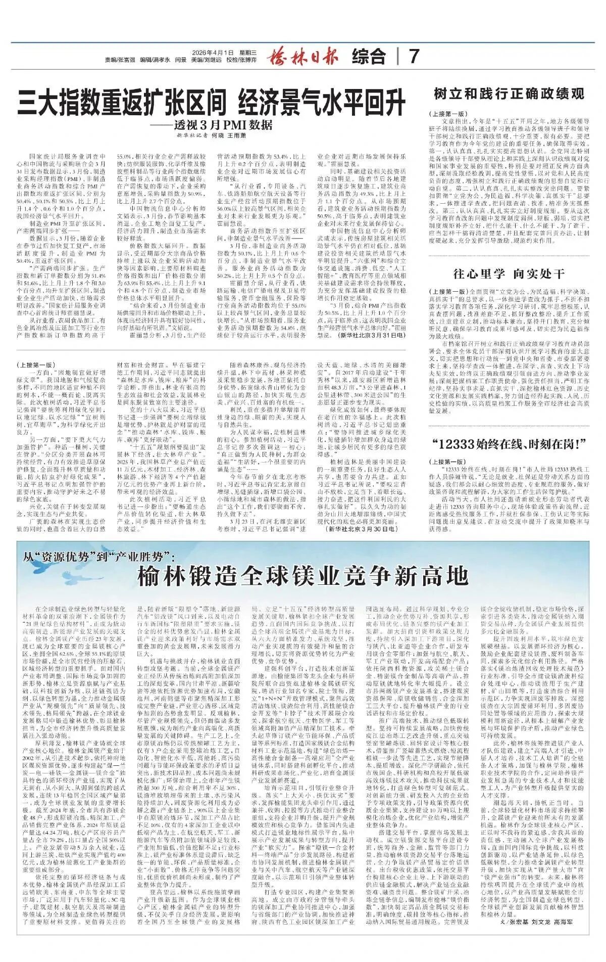 潮起海天阔,扬帆正当时。当前,全球轻量化材料市场需求持续攀升,金属镁产业迎来前所未有的发展机遇。榆林作为全球镁业核心产区,正以时不我待的紧迫感、舍我其谁的责任感,主动融入全球产业发展格局,直面国内国际竞争挑战,以科技创新驱动、以产业链条延伸、以绿色低碳转型,全力推动金属镁产业转型升级,加快实现从“镁产量大市”向“镁产业强市”的转变。未来,榆林将持续巩固提升在全球镁产业中的核心地位,以产业高质量发展赋能全市经济转型,为全国制造业绿色转型、全球镁产业创新发展贡献榆林智慧和榆林力量。