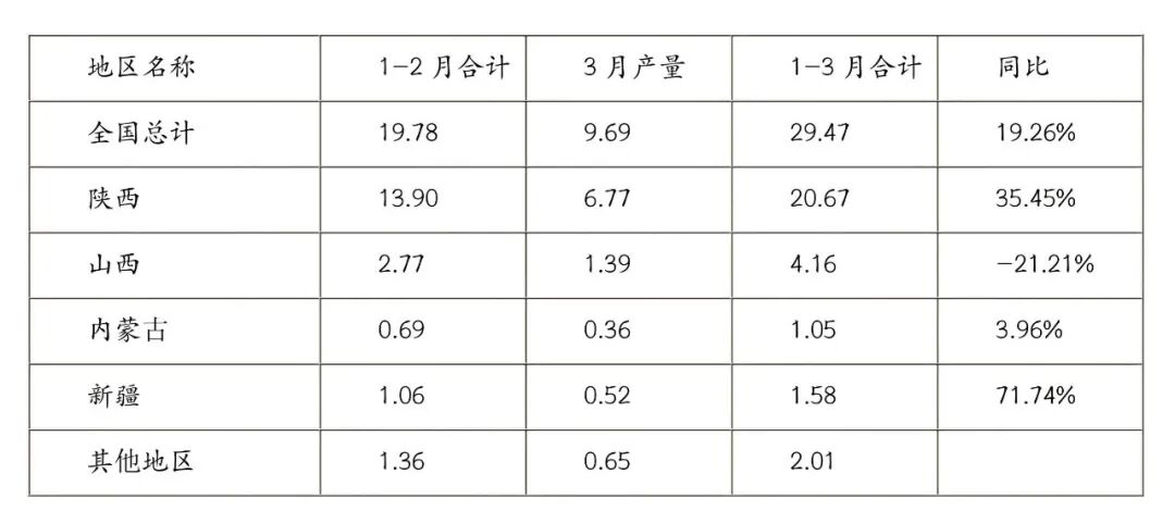 据中国有色金属工业协会镁业分会不完全统计,2026年3月份中国原镁产量约为9.69万吨,环比增长1.15%,同比上涨25.03%。2026年1——3月中国共产原镁约为29.47万吨,同比增长19.26%。其中,陕西地区累计生产约为20.67万吨,同比增长35.45%;山西地区累计生产约为4.16万吨,同比下降21.21%;内蒙地区累计生产约为1.05万吨,同比增长3.96%;新疆地区累计生产约1.58万吨,同比增长71.74%;其他地区累计生产约为2.01万吨。