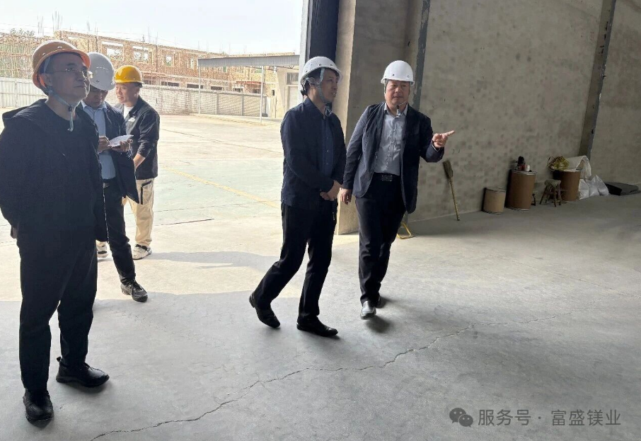 2026年4月15日,永济市人大主任张立功一行在卿头镇镇长薛天武陪同下到山西富盛镁业有限公司开展实地调研与视察指导工作。公司董事长陈效军率全体员工予以热情接待,并全程陪同调研。调研期间,张主任、薛镇长一行深入公司仓库区域及改建工地一线进行实地考察。详细了解了公司近期的安全生产落实情况与扩建改造工程进度。