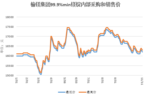 11月11日(周二),99.9%镁锭府谷地区工厂报主流出厂含税现金价格16250元/吨,主流成交价格16200——16300元/吨,较昨日继续回调50元/吨。据了解,今日下游延续按需采购,市场缺乏强有力的需求支撑,采购方对高价货源接受不良。工厂有序出货,库存压力不大。 综合分析,当前供需关系未见改善,下游延续刚需采购,且无重大利好消息提振,预计短期镁市回升困难;但是目前镁价已回落至年度低位,受成本和刚需支撑,预计镁市下调空间也很有限,预计本周镁市将窄幅调整运行。