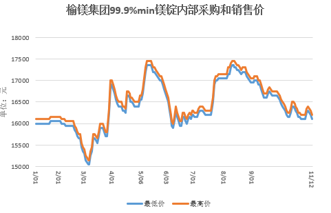 11月12日(周三),本周过半,因需求未见改善,煤炭价格弱势调整,成本支撑减弱,镁市承压回落,99.9%镁锭府谷地区工厂报主流出厂含税现金价格16100——16200元/吨,主流成交价格回落至16150元/吨。至此,镁价重回谷底。 下游延续按需采购,采购量未见增加;工厂生产稳定,主产区工厂复产增多,当前市场货源充足。供大于求的市场环境抑制镁价上涨。 综合分析,当前需求未见好转,供大于求,预计短期镁市回升困难;但镁价已回落至年度低位,加之刚需对镁市存在一定支撑,预计镁市短期内将弱稳盘整。
