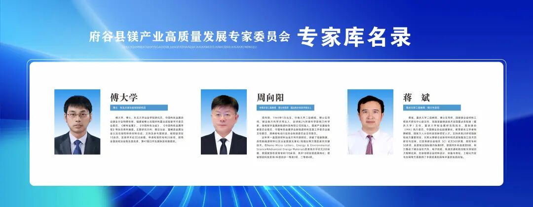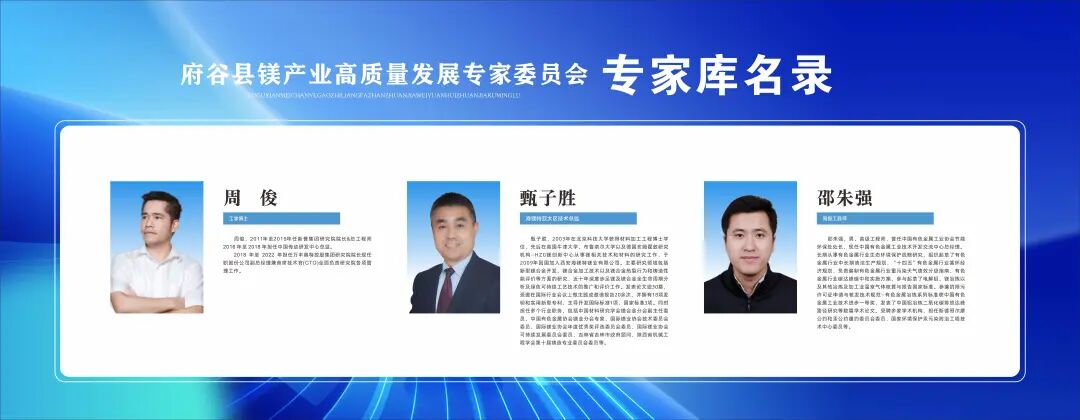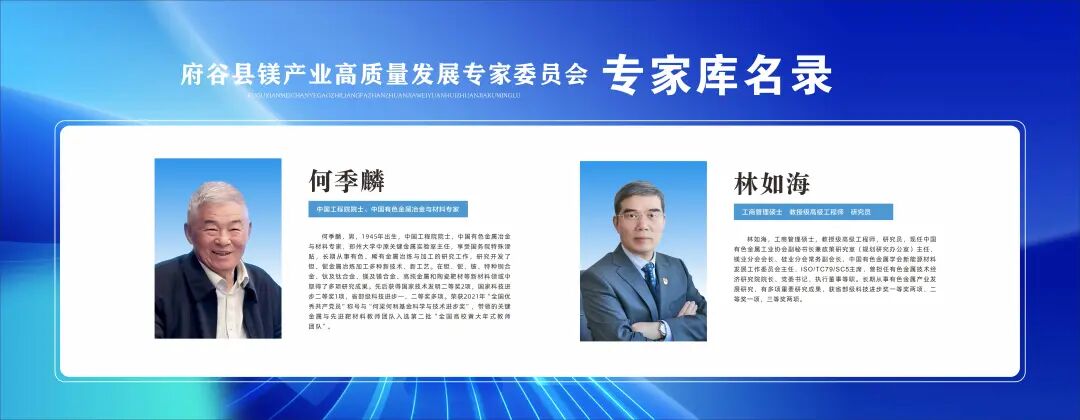 首席委员由何季麟院士担任,主任委员由林如海担任,委员聘请国内知名院校、科研院所、专业机构的23位专家,全面推动府谷县镁产业绿色低碳高质量发展进程。在专业指导层面,由各科研院所、高等院校及行业权威专家组成“原镁冶炼、镁合金熔铸、镁合金加工、镁废料回收、固废综合利用”智囊团队,针对“安全环保、节能降碳、绿色生产、智能制造”等领域的工艺优化与技术升级,设立专项课题进行攻关。
