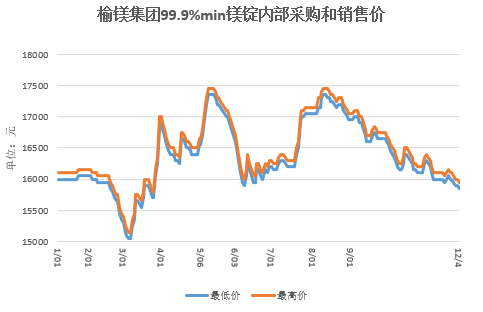 12月4日(周四),国内镁市小幅下行,99.9%镁锭府谷地区主流出厂含税现金价格15850——16950元/吨,主流成交价格15900元/吨,较昨日下跌50元/吨。 近日行情下行,市场需求不振,下游客户和中间商采购态度更加谨慎,镁市成交惨淡。 综合分析,由于市场需求未见好转,且无利好消息提振,镁市将承压运行,但目前镁价已位于低位区间,受成本和刚需支撑,预计镁价不会出现大幅下跌,短期将延续弱稳盘整。