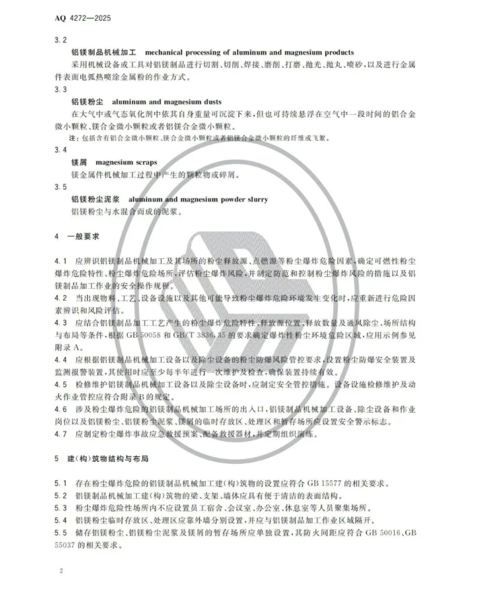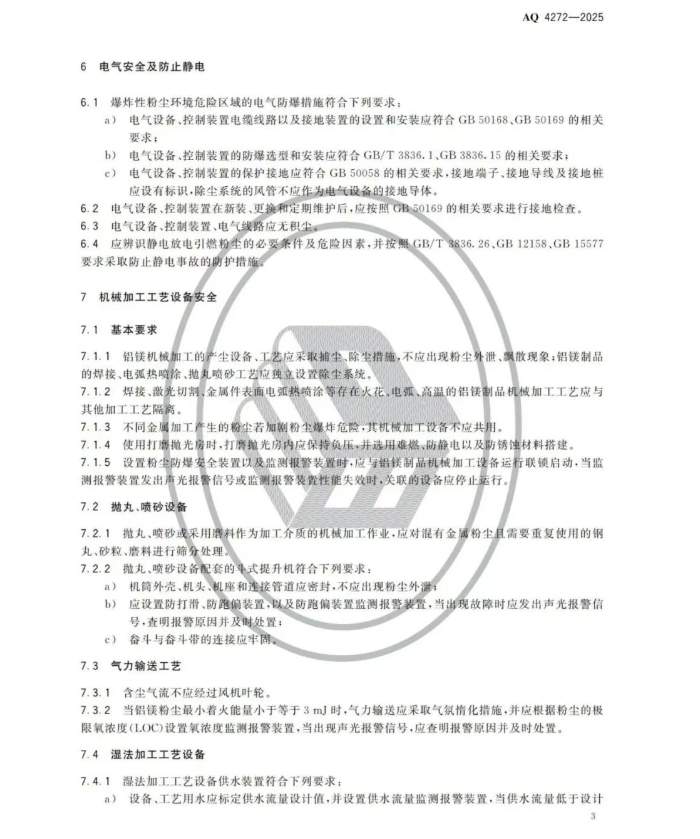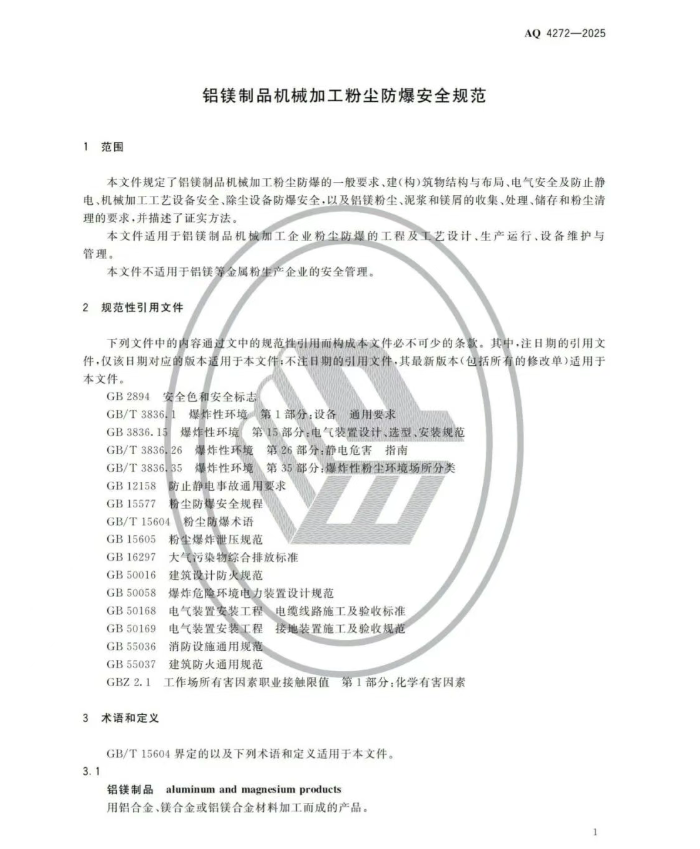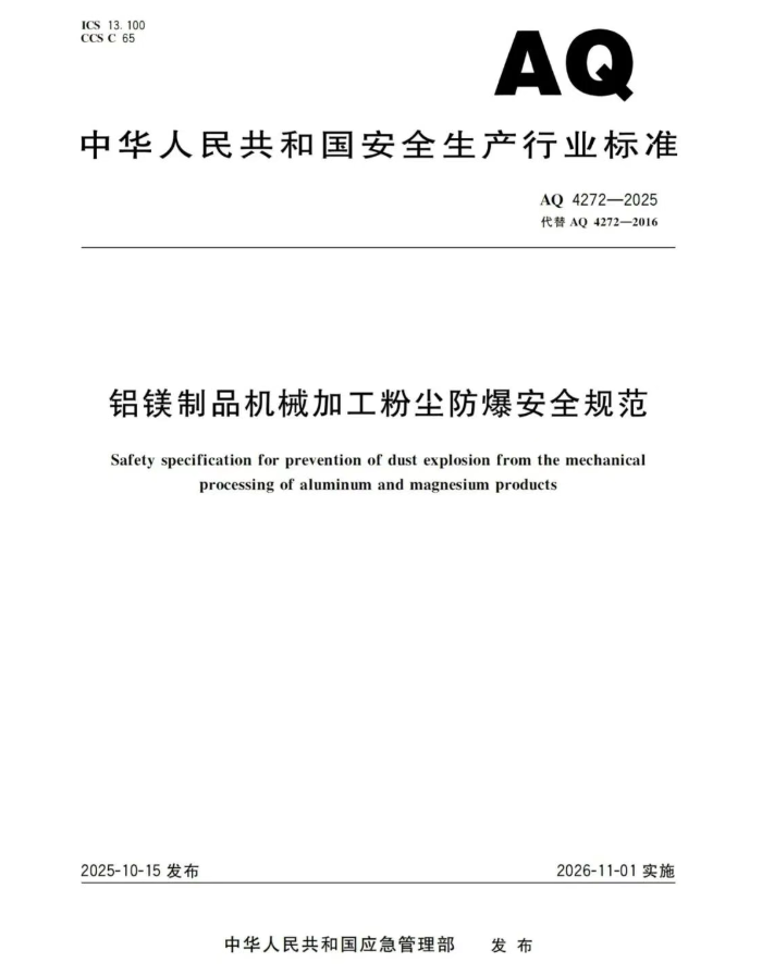 《铝镁制品机械加工粉尘防爆安全规范》