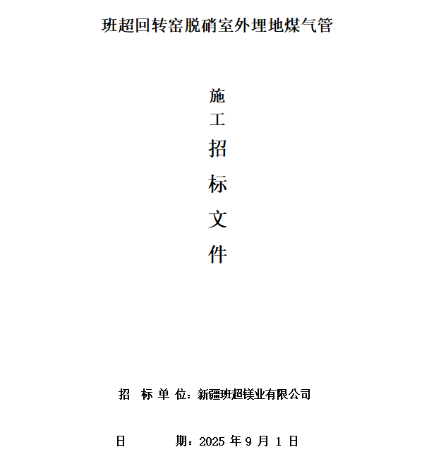 【招标公告】新疆班超集团班超镁业盛镁镁业办公楼、回转窑脱硝室外埋地煤气管项目招标