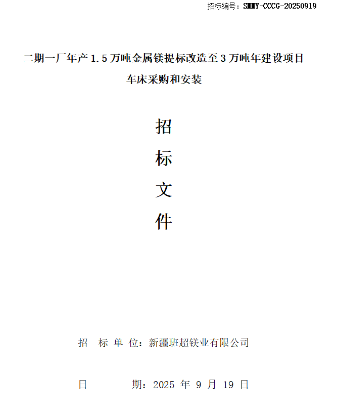 本次招标范围:[盛镁镁业有限公司厂区一台车床采购和安装]
