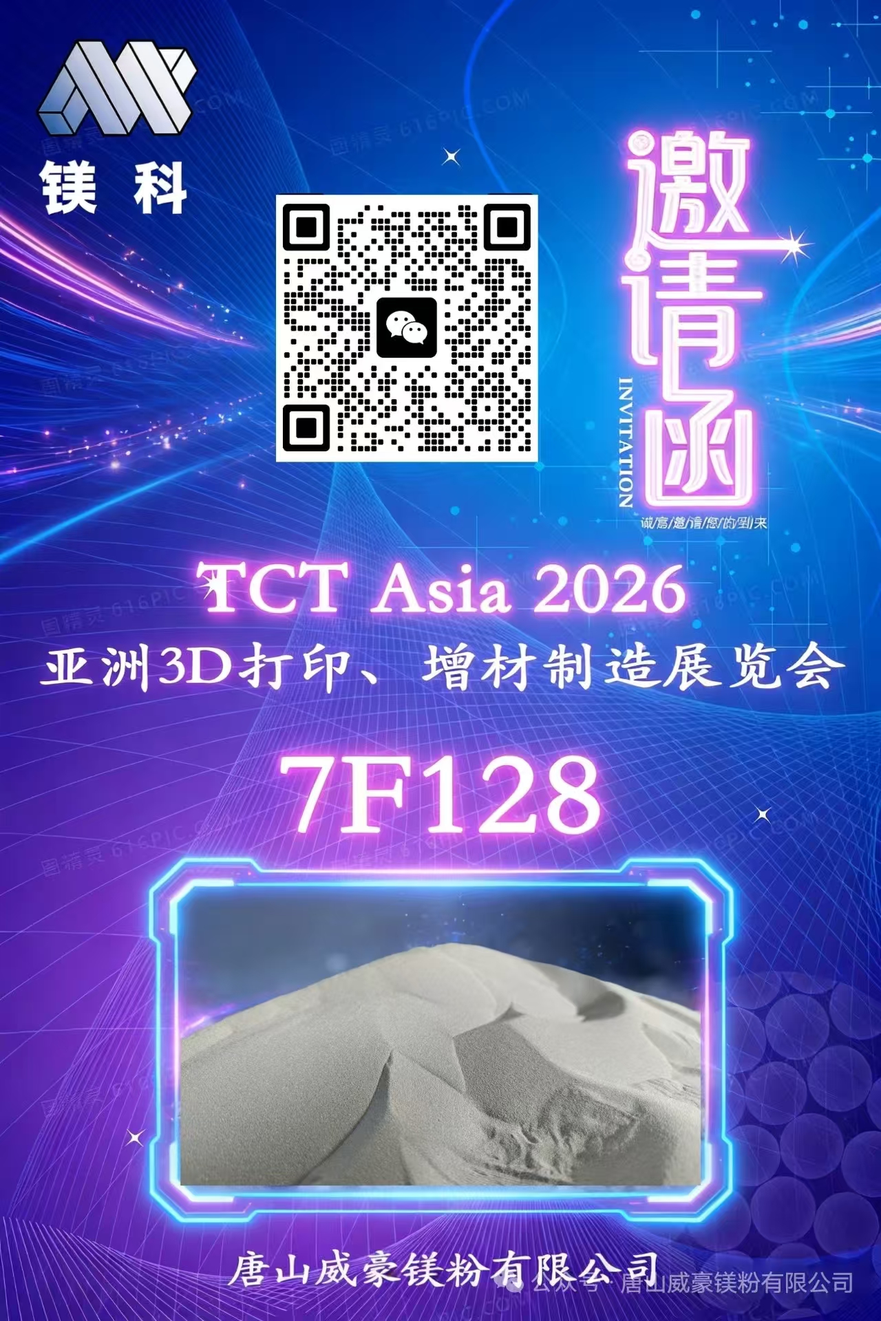 唐山威豪镁粉有限公司长期专注于雾化球形镁粉及镁合金粉末的研发与生产,并积极推动镁基材料在增材制造领域的工程化应用。此次 TCT Japan 的成功参展,不仅提升了公司在国际市场的品牌影响力,也进一步推动了镁合金3D 打印材料在全球增材制造产业中的认知和应用。 未来,唐山威豪将持续以技术创新为驱动,与全球合作伙伴携手,共同探索镁合金增材制造的更多可能。